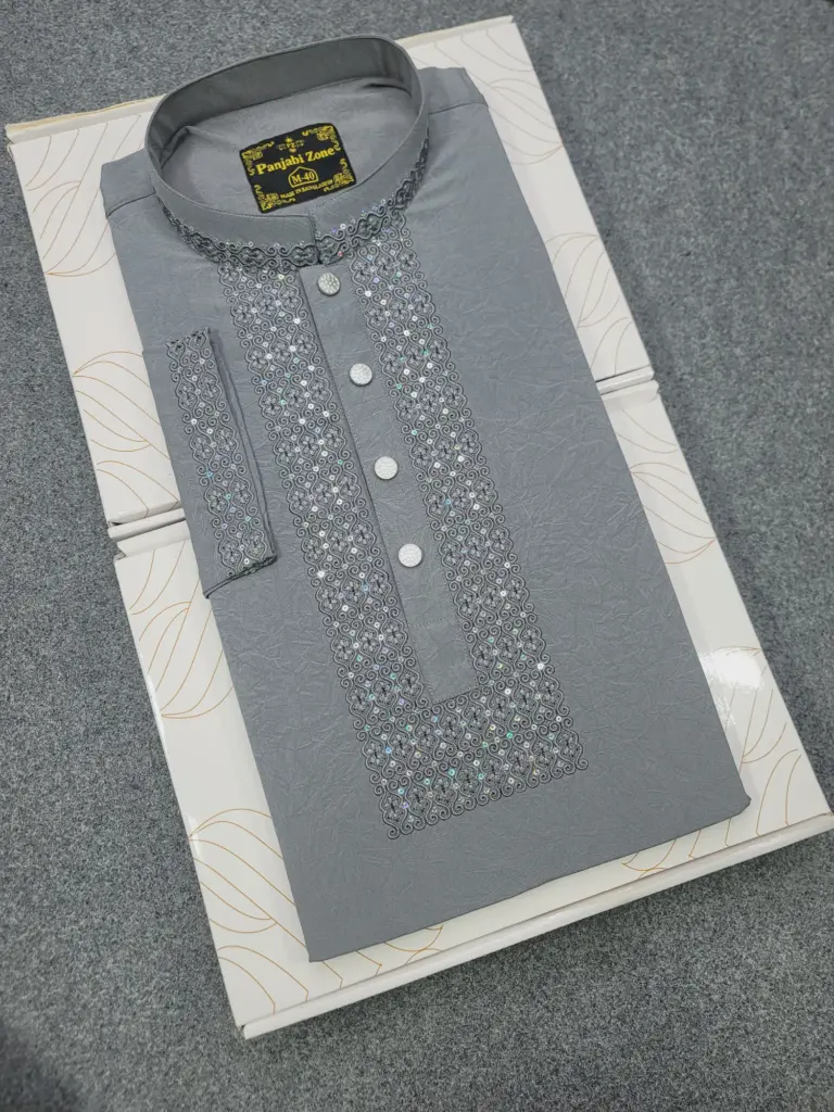 পাঞ্জাবির সাথে আপনার আভিজাত্য প্রকাশ করুন। প্রিমিয়াম চাইনিজ সফট ভাঙচুর কটন ফেব্রিক দিয়ে তৈরি এই পাঞ্জাবিটি অত্যন্ত আরামদায়ক এবং টেকসই। এর কলার এবং বুকে করা আধুনিক জ্যামিতিক এমব্রয়ডারি কাজ আপনাকে যেকোনো উৎসব বা সামাজিক অনুষ্ঠানে দেবে এক প্রিমিয়াম ও মার্জিত লুক।